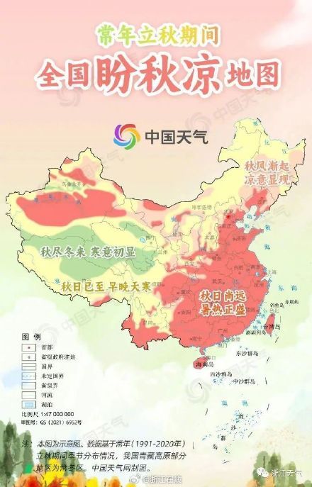 今天立秋,但立秋不等于入秋,在氣象學上,入秋的標準是連續5天日均氣溫或5天滑動平均氣溫小于22℃且大于等于10℃。比如杭州,常年平均入秋時間一直要等到10月3日。目前來看,副高的實力并沒有那么強,兇猛的高溫熱浪暫時隱身,雷陣雨天氣增多,強對流出沒,大家要注意防范!氣溫方面,未來七天,高溫相對“低調”,預計浙江大部最高氣溫在33-35℃之間,濕度大,悶熱感濃郁,大家需要做好身心調節。