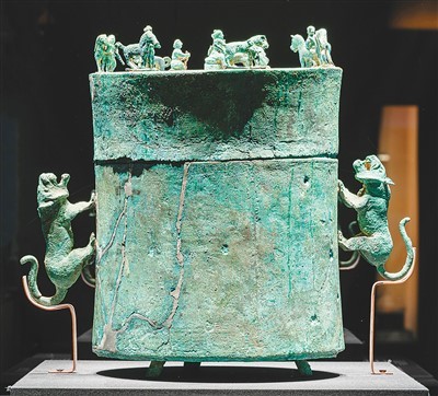 西漢馴馬場面銅貯貝器,李家山青銅器博物館藏