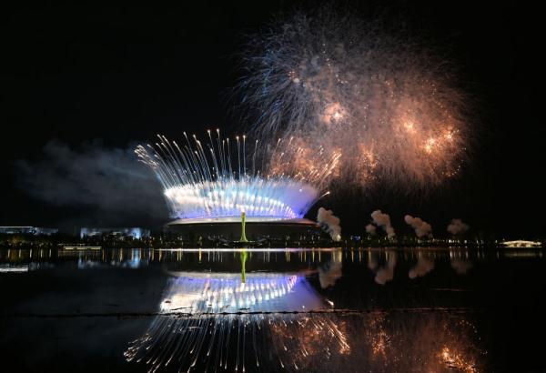 這是7月28日拍攝的開幕式焰火。新華社記者晉美多吉攝