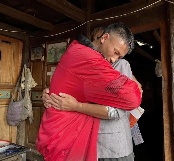 姚勝旺拿到通知書后激動地和母親擁抱。