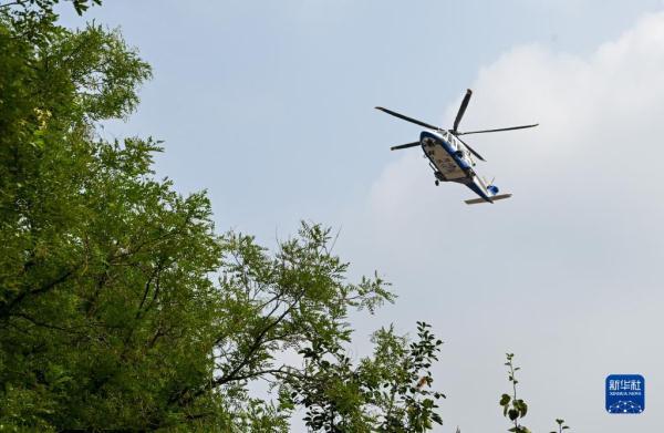 當日,天津市公安局調派警用直升機來到天津防洪重點地區上空,利用光電吊艙、實時圖傳設備與地面搶險力量配合進行空中巡邏,監測大清河、子牙河等重點河道、堤岸、橋梁等重點部位的防洪情況。
