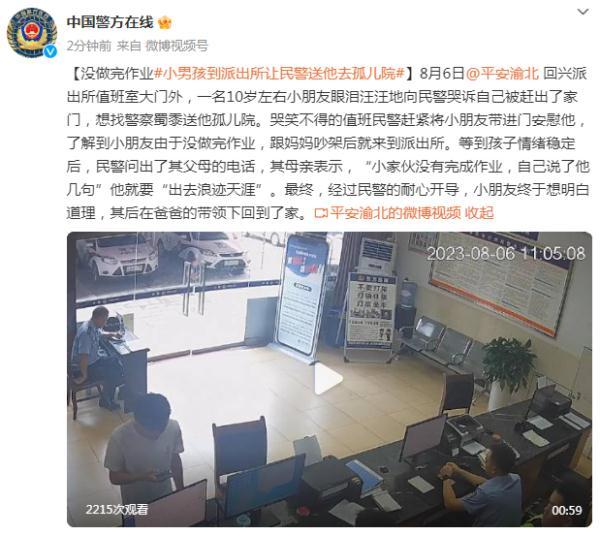 8月6日,回興派出所值班室大門外,一名10歲左右小朋友眼淚汪汪地向民警哭訴自己被趕出了家門,想找警察蜀黍送他去孤兒院。哭笑不得的值班民警趕緊將小朋友帶進門安慰他,了解到小朋友由于沒做完作業,跟媽媽吵架后就來到派出所。等到孩子情緒穩定后,民警問出了其父母的電話,其母親表示,“小家伙沒有完成作業,自己說了他幾句”他就要“出去浪跡天涯”。最終,經過民警的耐心開導,小朋友終于想明白道理,其后在爸爸的帶領下回到了家。