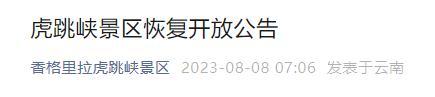 香格里拉虎跳峽景區(qū)發(fā)布恢復開放公告