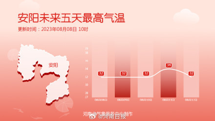 未來三天全省大部晴天常駐,雖然最高氣溫多在30~34℃。但配合較高的相對濕度,體感仍然悶熱。周五開始,高溫勢力抬頭,預計11到14日,中東部、南部最高氣溫將達到35~38℃。注意防暑降溫!(河南氣象)