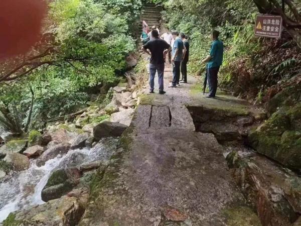 徐先生的妹妹說,那個(gè)石板有些濕滑,正當(dāng)她倆踏上該石板時(shí),右側(cè)斜山坡上突然沖出一股巨大的洪水,瞬間將她倆沖下左側(cè)山崖,她倆再順著水流一直往下沖,“后來我被一塊大石頭擋住,我吃力地爬了起來,渾身濕透,四處無人,我哭著呼救,但沒有人應(yīng)答。”