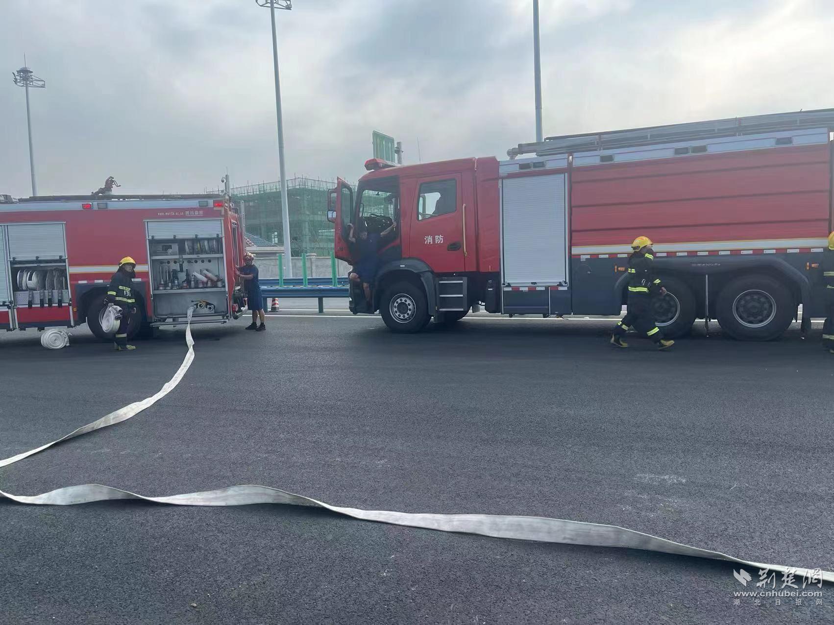 安全停車后,為確保道路車輛及群眾安全,民警立即安排人員將周邊道路進行了臨時交通管制。民警一邊聯系消防站,一邊與收費站工作人員一同,拿來滅火設備,對車輛展開緊急滅火措施。