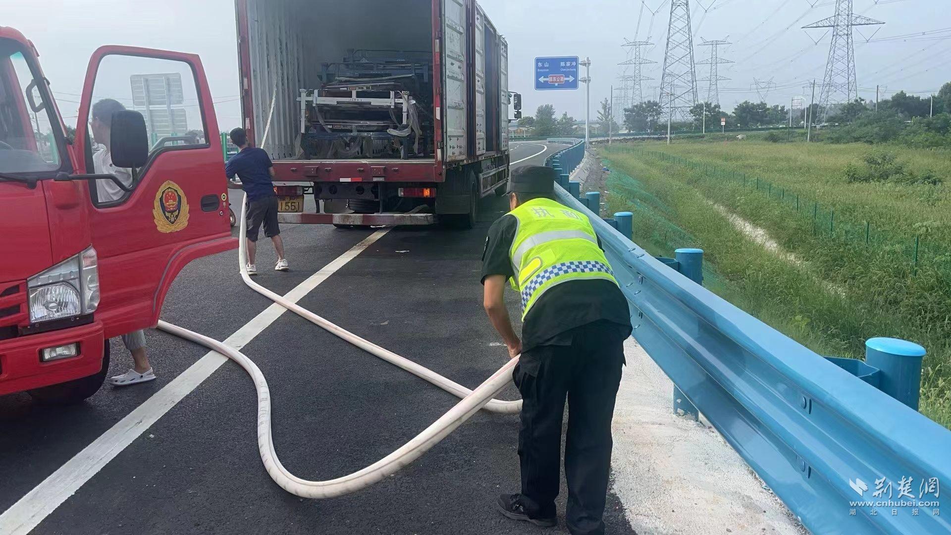荊楚網(湖北日報網)訊(通訊員 李黎明 劉云崢) “551車主,請立即跟隨警車,前往安全地帶靠邊停車!”在早高峰高速路段,一貨車箱體內疑似起火冒出滾滾濃煙,而此時的車主卻毫不知情,一輛“火車”正高速行駛在路面上,情形十分危急。