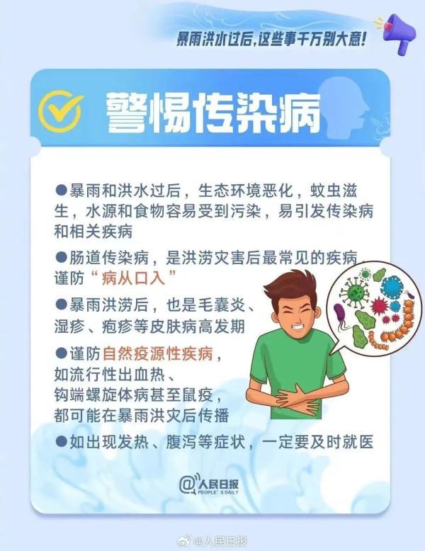 暴雨洪水除了帶來泥石流、滑坡等災害,還會污染水源和引發傳染病疫情,即使暴雨和洪水退去也不可掉以輕心。