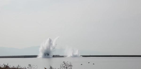 2010年,愛媛縣松山港對(duì)海底炸彈進(jìn)行爆破處理(社交媒體截圖)