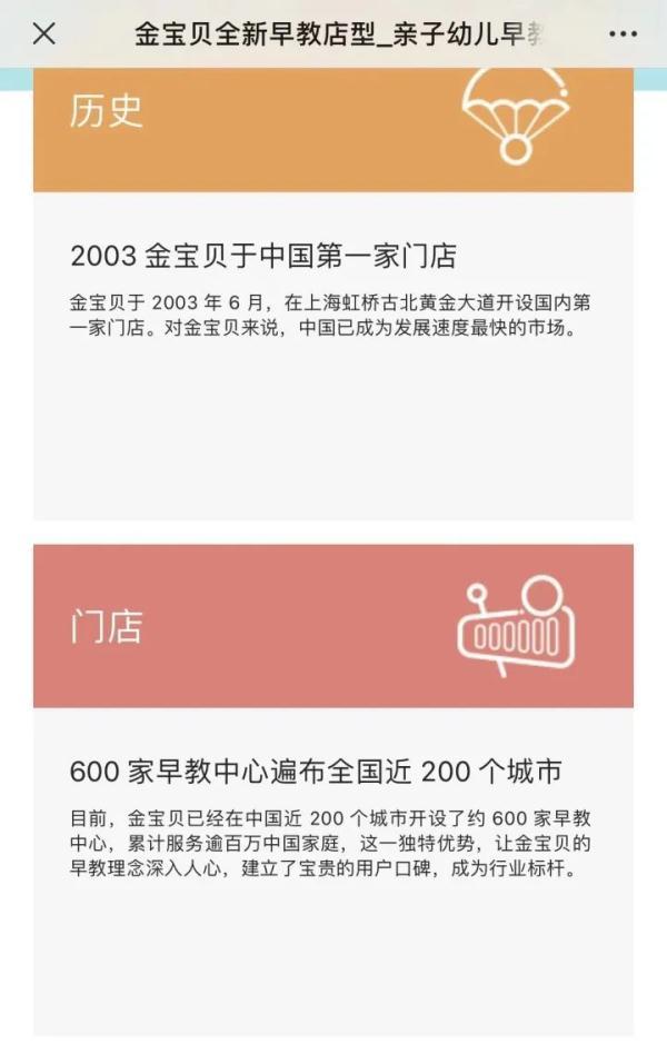 金寶貝早教APP官方數(shù)據(jù)顯示,該機構(gòu)已在國內(nèi)近200個城市開設(shè)了約600家早教中心,累計服務(wù)逾百萬中國家庭。