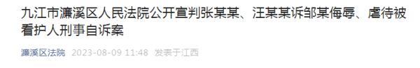 2023年8月9日9時30分,江西省九江市濂溪區人民法院對自訴人張某某、汪某某訴被告人鄒某侮辱、虐待被看護人案進行了一審公開宣判。