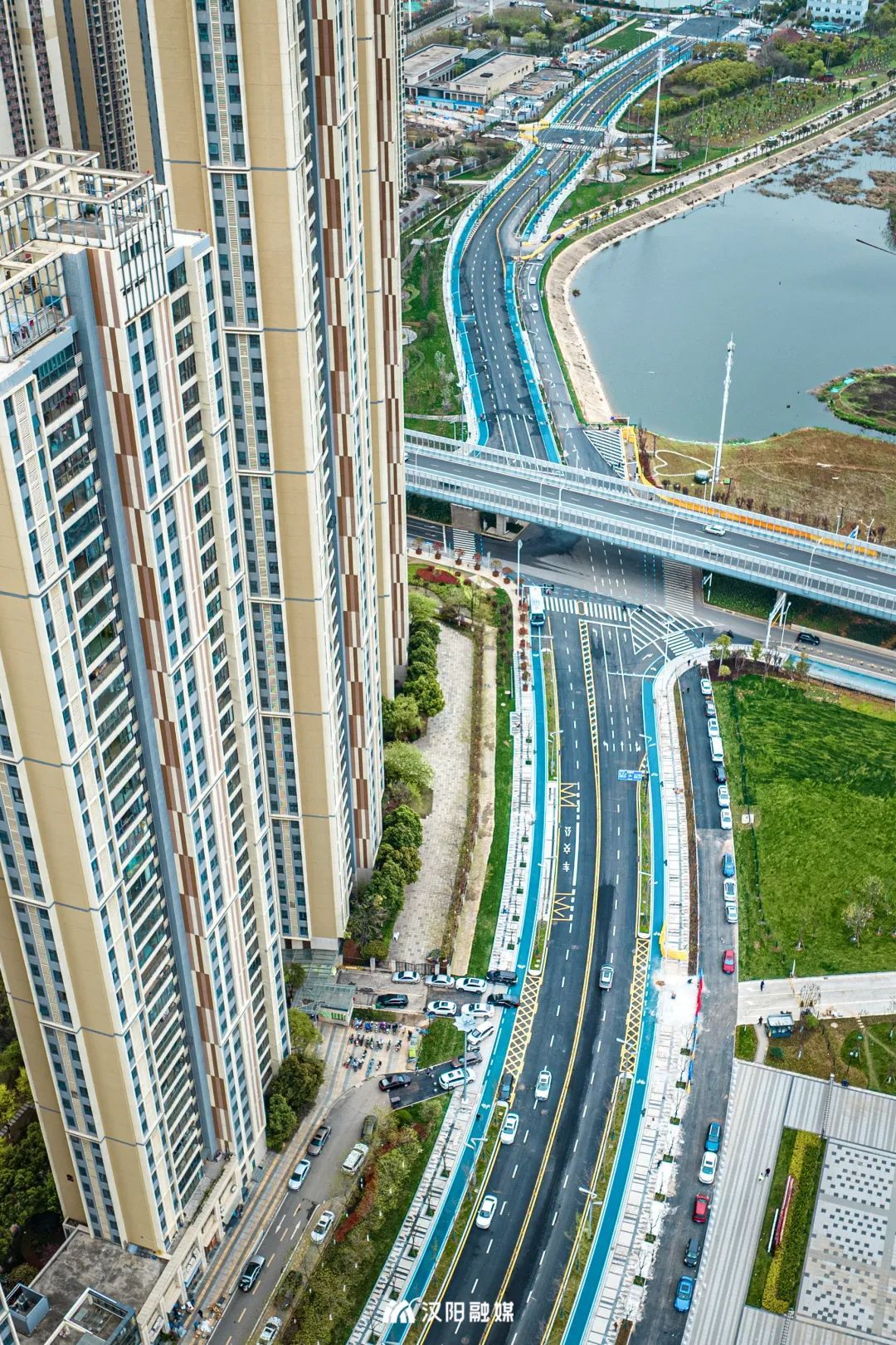 △3月17日,漢江南岸,知音大道(蟠龍路-金龍路)段正式通車,1公里路段串聯漢江灣花田花海、玫瑰體育公園和漢水公園多處景觀節點,打造知音大道全線工程中的最美濱江景觀路。