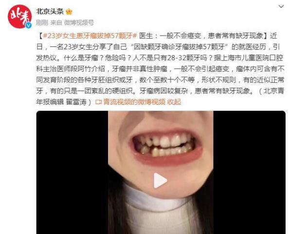 近日,一名23歲女生分享了自己“因缺顆牙確診牙瘤拔掉57顆牙”的就醫經歷,引發熱議。什么是牙瘤?危險嗎?人不是只有28-32顆牙嗎?據上海市兒童醫院口腔科主治醫師段阿竹介紹,牙瘤并非真性腫瘤,一般不會引起癌變,瘤體內可含有不同發育階段的各種牙胚組織或牙,數個至數十個不等,形狀不規則,有的近似正常牙,有的只是一團紊亂的硬組織。牙瘤病因較復雜,患者常有缺牙現象。