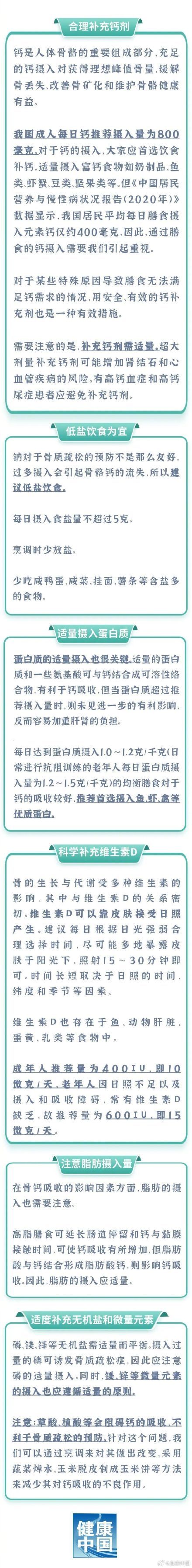 預防骨質疏松,如何健康飲食?總的原則還是合理營養,均衡膳食。食物多樣,保證一日三餐及合理的零食補充,特別是對于骨質疏松高發的老年人而言,應保證總能量攝入充足,但不宜過高。同時,建議攝入富鈣、低鹽(5克/天)和適量蛋白質的均衡膳食。