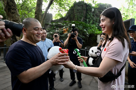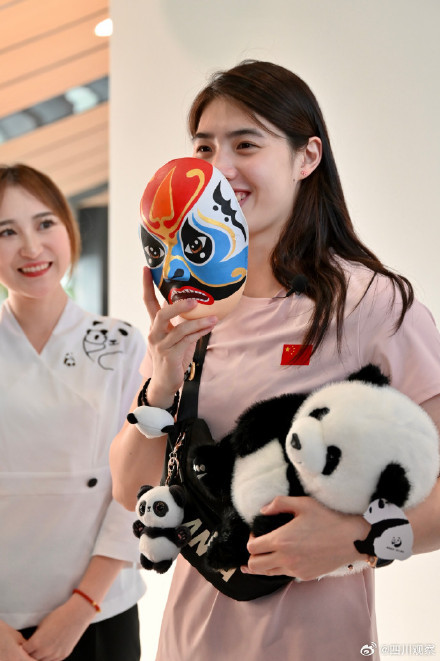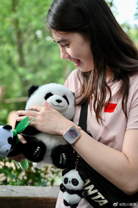 近日,游泳運動員張雨霏終于見到了心心念念的頂流女明星“花花”,滿眼的喜歡都要溢出屏幕啦!網友:張雨霏來成都花花噴嚏沒斷過。(圖源網絡)