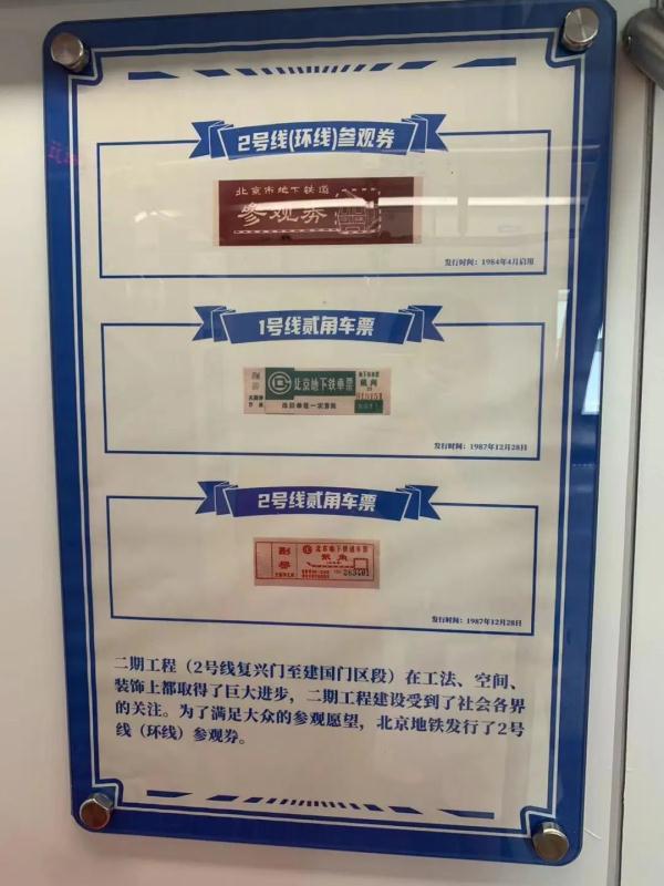 車廂里圖文展示當年的地鐵車票/記者拍攝