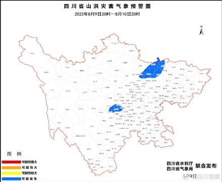 8月9日17時,四川山洪災害藍色預警。9日20時至10日20時,廣元市青川、劍閣、朝天、利州、昭化,綿陽市平武、北川、江油、梓潼,雅安市蘆山、滎經、天全、雨城、名山,眉山市丹棱、洪雅等16個縣(市、區)可能發生山洪災害。請注意防范。