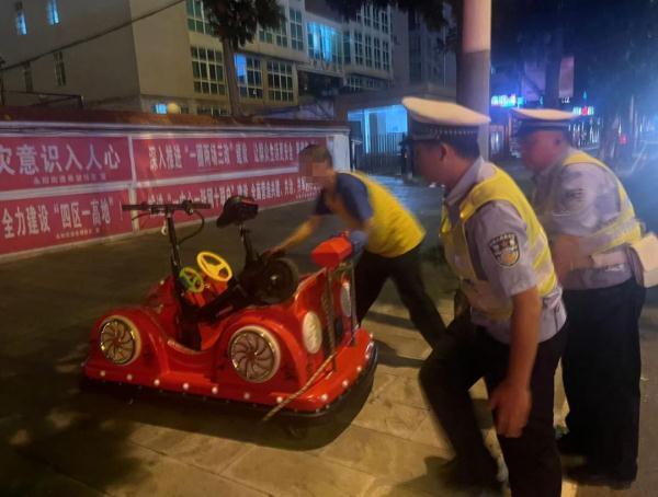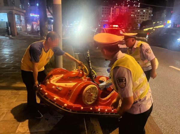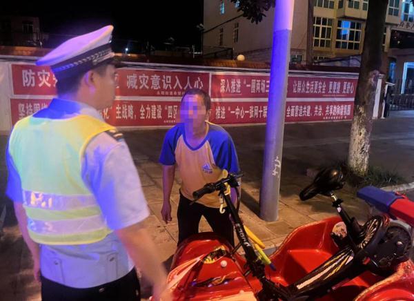 7月25日晚,在貴陽市息烽縣高鐵站路段,有一名男子駕駛兒童玩具車在機(jī)動車道上行駛。被息烽縣公安局交警大隊巡邏民警發(fā)現(xiàn),并對其進(jìn)行了批評教育。
