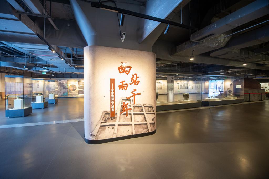 這是8月9日在杭州西站拍攝的“西站兩千年——李家塘遺址文物展”展區。