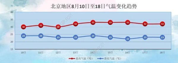 8月10日到18日,預(yù)計(jì)南郊觀象臺(tái)最高氣溫30℃至33℃,最低氣溫22℃至24℃。