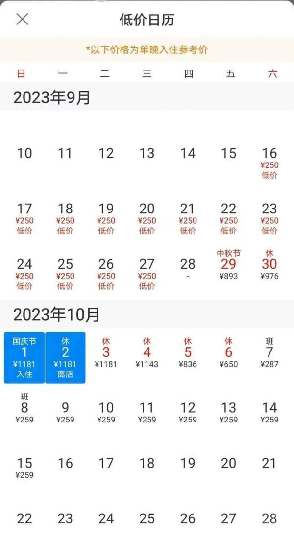 另外,記者看到,在福建廈門中山路的多家經濟型酒店,平時房型預訂最低價在200元左右,國慶期間,價格漲至上千元。如中山路步行街一家經濟型酒店,平時大床房最低價為250元,國慶期間,漲至1181元。