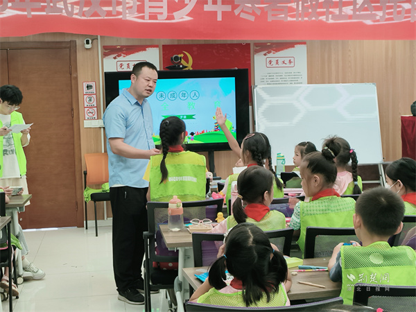 在室內課上,羅健與學生們積極互動,通過提問搶答的方式使學生們踴躍參與到課堂中來。講課內容立足四個“安全”,將涉及校園欺凌、假期人身安全、安全用水用電等教育內容融入青少年的日常生活,將法治的“種子”播種在孩子們的心中,培養青少年遵守法律、法規、及社會公共道德規范的觀念,增強青少年的愛國意識、安全意識。
