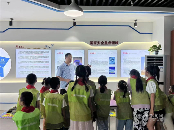 “大家知道國家安全日是幾月幾日嗎?”“危害國家安全的行為有哪些?”現場,司法所所長羅健帶領學生們參觀南湖國家安全教育基地,利用基地的展板、視屏等載體向青少年們詳細介紹了《國家安全法》的相關知識,讓學生們明白國家安全和家庭個人的緊密聯系,樹立起“國家安全,人人有責”的擔當意識。