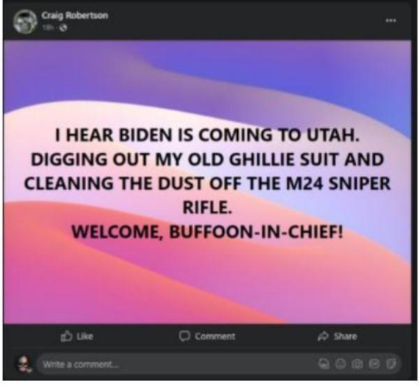 從美國媒體的報道來看,這名被FBI槍殺的男子名叫克雷格·羅伯森(CraigRobertson),今年75歲,生活在美國猶他州的普羅沃市。在被FBI于當地時間8月9日早上6時15分左右槍殺前,他被前者指控曾多次發帖威脅要殺美國總統拜登。