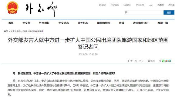 問:我們注意到,中方進一步擴大了中國公民出境團隊旅游國家范圍,能否介紹有關情況?