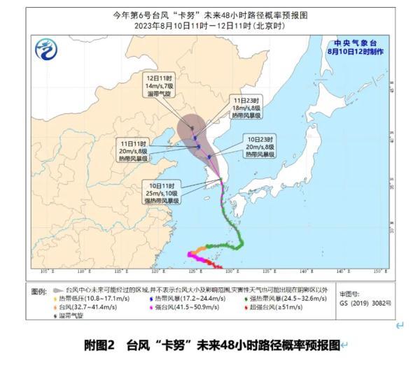 今年第6號臺風“卡努”(KHANUN)(強熱帶風暴級)的中心10日11時距離韓國全羅南道東偏北方向約145公里(北緯35.5度、東經128.4度),中心附近最大風力有10級(25米/秒),中心最低氣壓為980百帕。