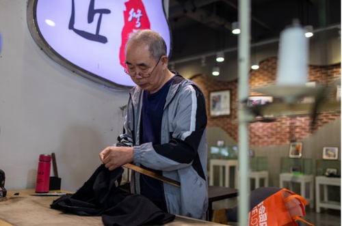 甘華富師傅在工位上忙碌。記者 顧磊 攝