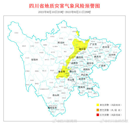 8月10日,四川自然資源發布全省地質災害氣象風險三級黃色預警: