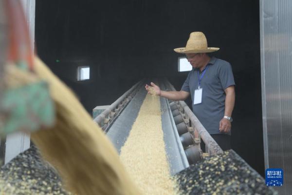 在江西省南昌縣橫崗國家糧食儲備庫,工作人員通過設備檢測抽樣糧食的水分、品質、農藥殘余、重金屬等情況(8月8日攝)。