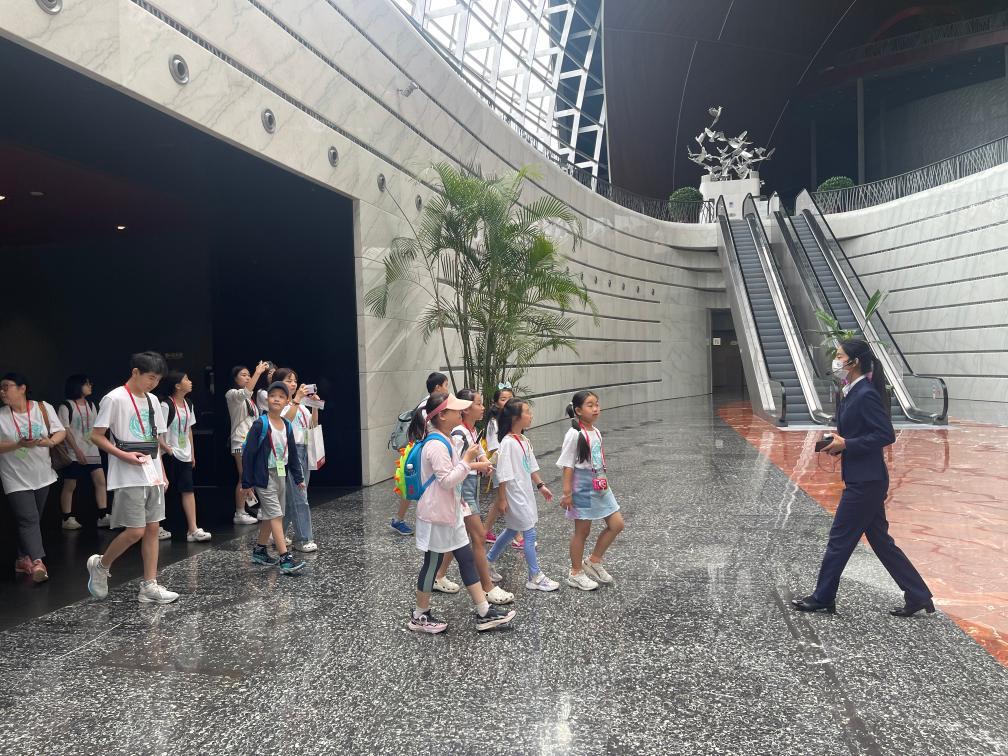 7日,研學(xué)營(yíng)走進(jìn)國(guó)家大劇院,欣賞建筑之美、感受民樂魅力。走過水波蕩漾的人工湖,孩子們被由1.8萬多塊鈦金屬板和1200多塊超白玻璃巧妙拼接而成的國(guó)家大劇院殼體所吸引。“這像一個(gè)巨大的蛋”“這像一塊晶瑩剔透的大寶石”……孩子們熱烈地討論著。