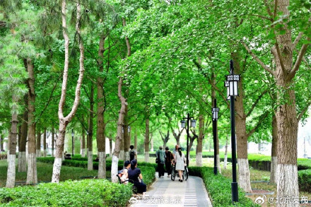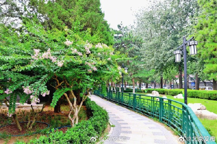 如今,紅墻墻面被鮮艷的“中國紅”取代,莊嚴美麗。廣場上,花崗巖地面鋪設(shè)一新,老人們聊天散步,孩子們嬉笑玩耍。大樹下,新栽植了玉簪、大花萱草、連錢草等耐陰植物,玉簪花正值花期,姿態(tài)清秀,花朵潔白如玉,散發(fā)淡淡花香。沿著公園里健步慢行系統(tǒng)南行,感到舒適、安全。大路上鋪設(shè)的是花崗巖,走起來輕快不累腳,小路則使用了透水磚,方便實用。每間隔15米新增了一個古樸的庭院燈,還有星星點點的地燈,讓夜晚游園不再摸黑。