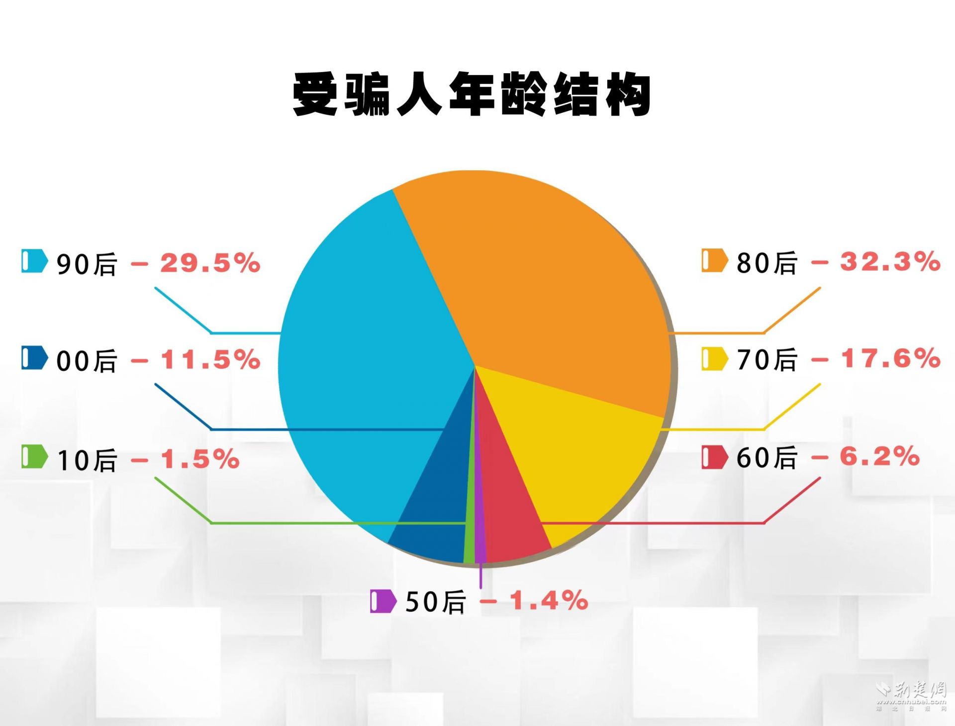 數據顯示,61.8%的受騙人為80后、90后。他們中大部分人受過良好教育,接觸網絡的時間較早,信息獲取渠道豐富,但面對精心設計、不斷迭代升級的網絡騙局,仍缺乏足夠的警惕和辨識能力。“00后”受騙人數同比呈現上升趨勢。此年齡段多為在校高中生、大學生,該群體正處于物質、精神需求高速增長期,社會經驗缺乏、防騙意識不強,更容易落入詐騙分子精心設置的陷阱。