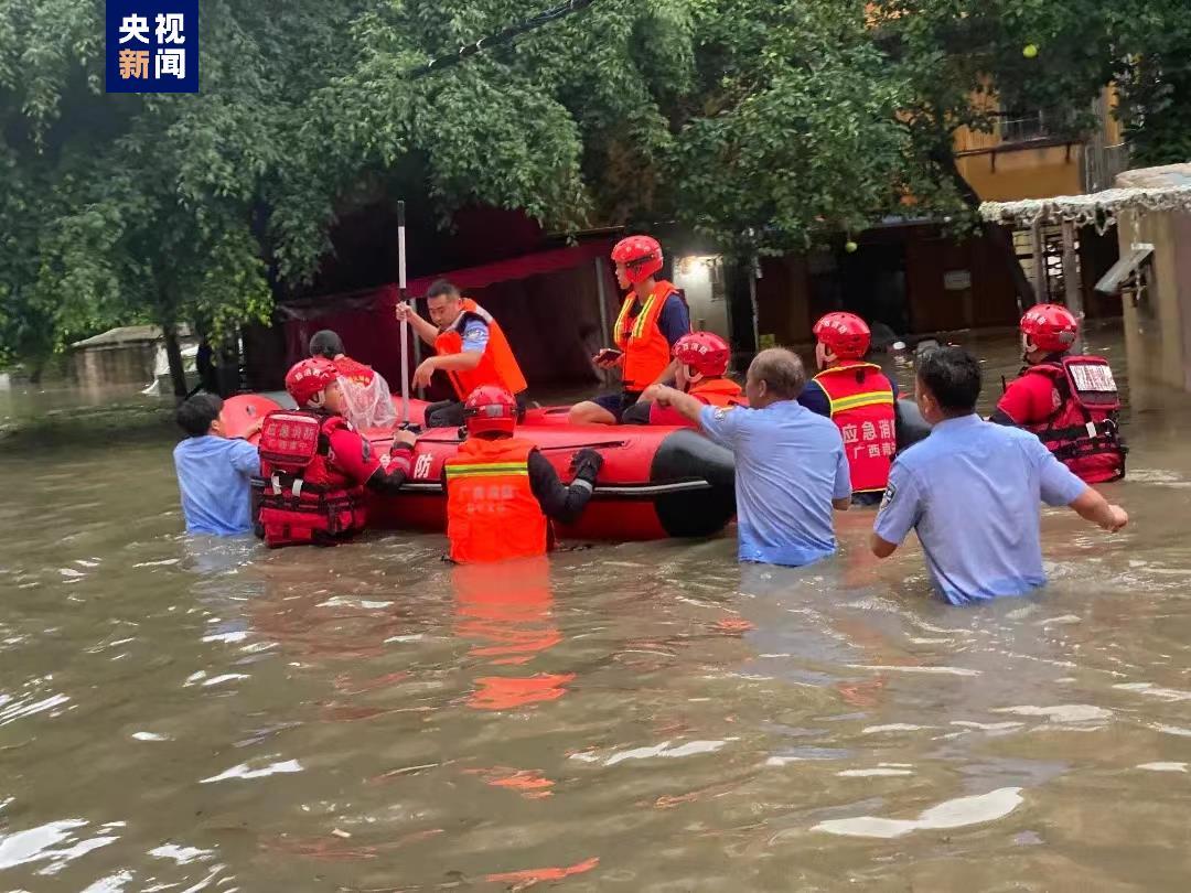 在青秀區鴛鴦樓小區,一名癱瘓在床的80多歲老人被困一樓家中。由于地勢低洼、雨勢過大,洪水上漲很快,情勢危急。南寧市公安局長崗派出所接到老人家屬求助后,立即與應急救援大隊隊員劃著沖鋒舟進入小區。