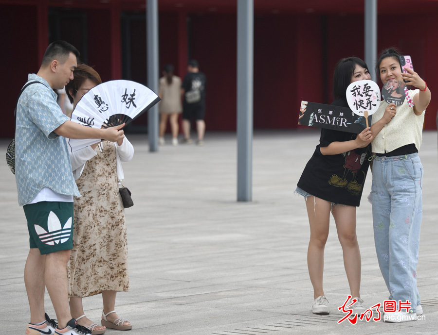 8月6日,北京凱迪拉克中心,演唱會開場前,歌迷拿著歌手的周邊拍照。(光明網(wǎng)記者 潘迪攝/光明圖片)