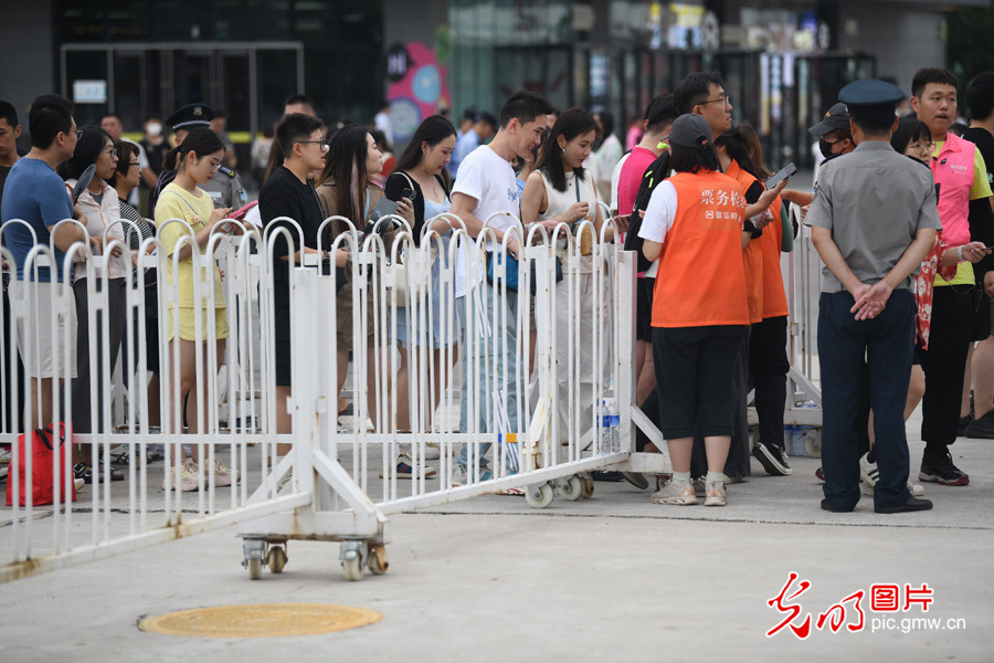 8月6日,北京凱迪拉克中心,演唱會開場前歌迷在排隊有序檢票入場。(光明網(wǎng)記者 潘迪攝/光明圖片)