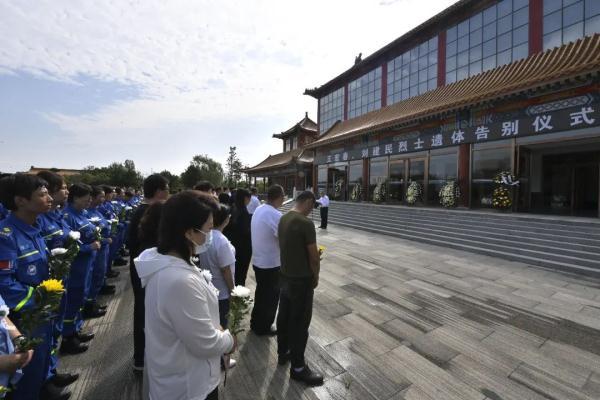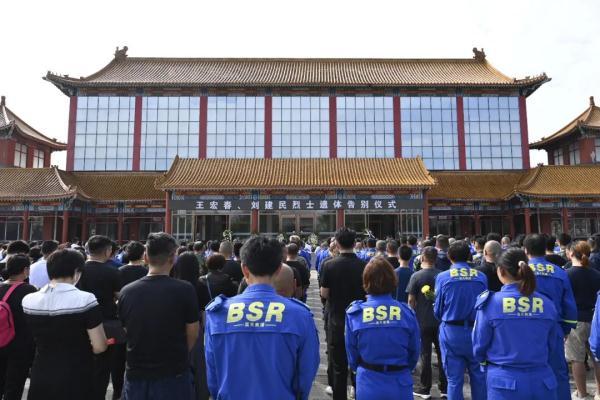 8月12日上午,在強降雨搶險救災中英勇犧牲的王宏春、劉建民烈士遺體告別儀式在房山區殯儀館舉行。