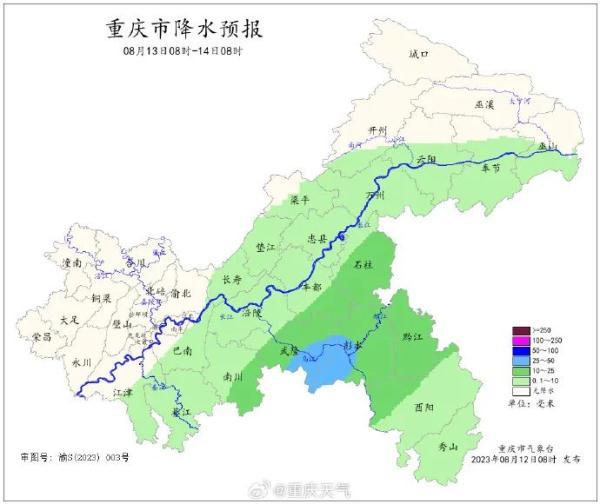 8月12日上午,重慶市水文監測總站發布的每日水雨情顯示:受降雨影響,過去一天,全市15條中小河流出現漲水過程。預計未來一天我市中西部、東北部部分中小河流可能出現不同程度漲水過程。