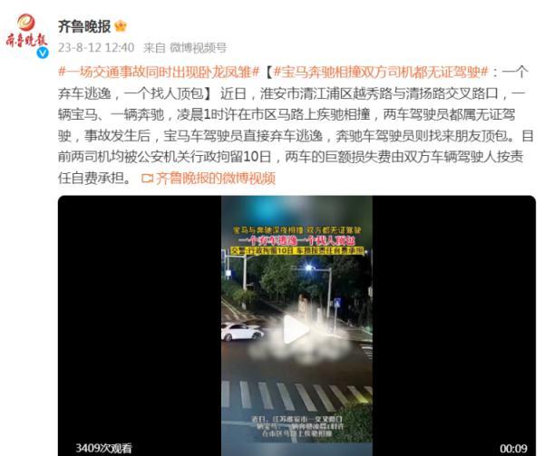 近日,淮安市清江浦區越秀路與清揚路交叉路口,一輛寶馬、一輛奔馳,凌晨1時許在市區馬路上疾馳相撞,兩車駕駛員都屬無證駕駛,事故發生后,寶馬車駕駛員直接棄車逃逸,奔馳車駕駛員則找來朋友頂包。目前兩司機均被公安機關行政拘留10日,兩車的巨額損失費由雙方車輛駕駛人按責任自費承擔。