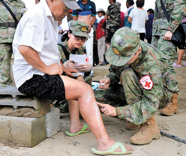 8月10日,聯(lián)勤保障部隊第984醫(yī)院野戰(zhàn)醫(yī)療隊派出6個醫(yī)療小組,深入北京市房山區(qū)受災村莊,為當?shù)厝罕婇_展醫(yī)療服務。侯顯峰攝