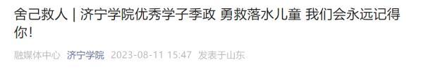 學校表示得知季政救人遇難的噩耗濟寧學院全體師生無比悲痛學校第一時間安排所在學院負責人帶隊趕赴季政家中慰問家人,協助處理善后事宜