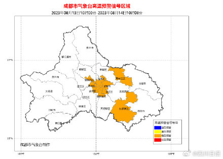 成都市氣象臺08月13日10時發布高溫橙色預警信號: