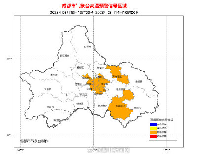 成都市氣象臺2023年08月13日10時00分發布高溫橙色預警信號: