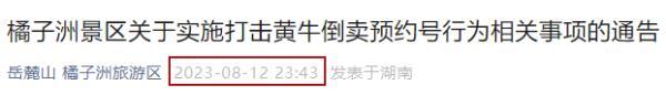 昨晚23點,橘子洲景區發布重要通告,為打擊黃牛倒賣預約號,橘子洲景區從即日起優化預約票務規則。