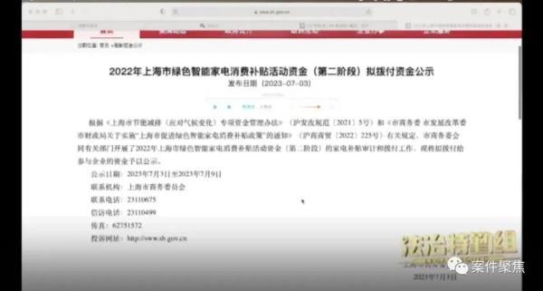 記者致電市商務委了解情況。原來,上海市促進綠色智能家電消費補貼活動是由市商務委、市發改委主辦,市財政局負責資金撥付的政府補貼活動,消費者在指定商戶購買符合標準的產品可以享受最高1000元的補貼,補貼資金總額在2億元。