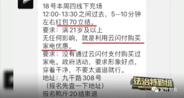 記者發現,網絡上有一條兼職廣告,聲稱只要參加一項利用“云閃付”app購買綠色家電的政府優惠活動,就可以拿到70元的工資。