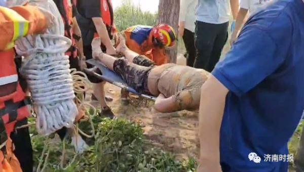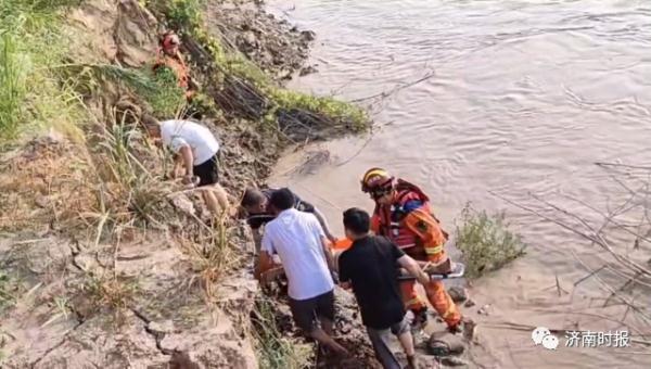 8月9日下午,在黃河濟(jì)南北河套村段,一名女子在河邊不慎踩空,受傷被困河灘。消防救援人員趕到現(xiàn)場(chǎng),將女子救起。